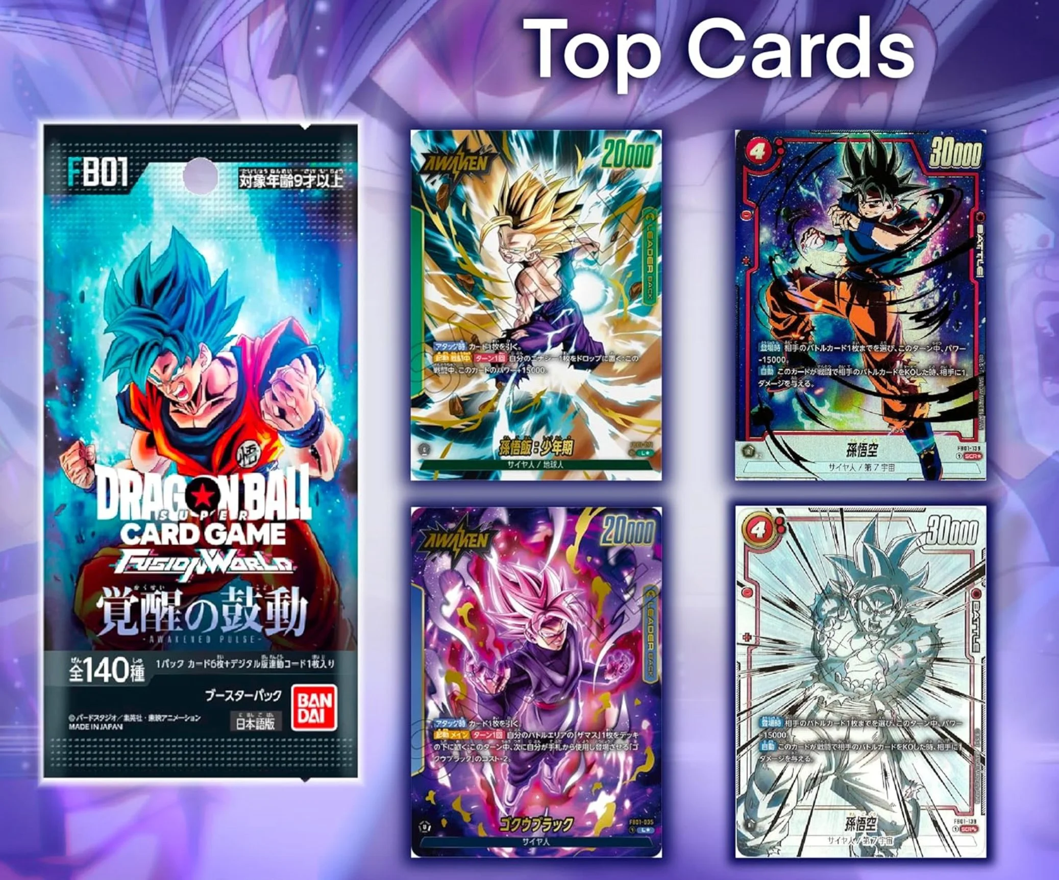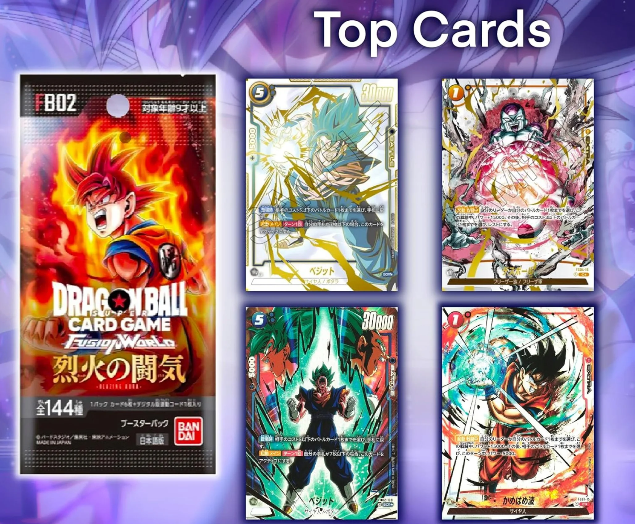 5 Unique Packs: Includes FB-01, FB-02, FB-03, FB-04, and 1 DBZ Heroes Pack for an exciting mix of cards.